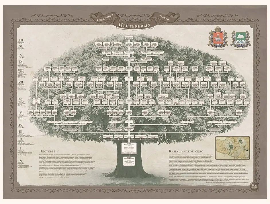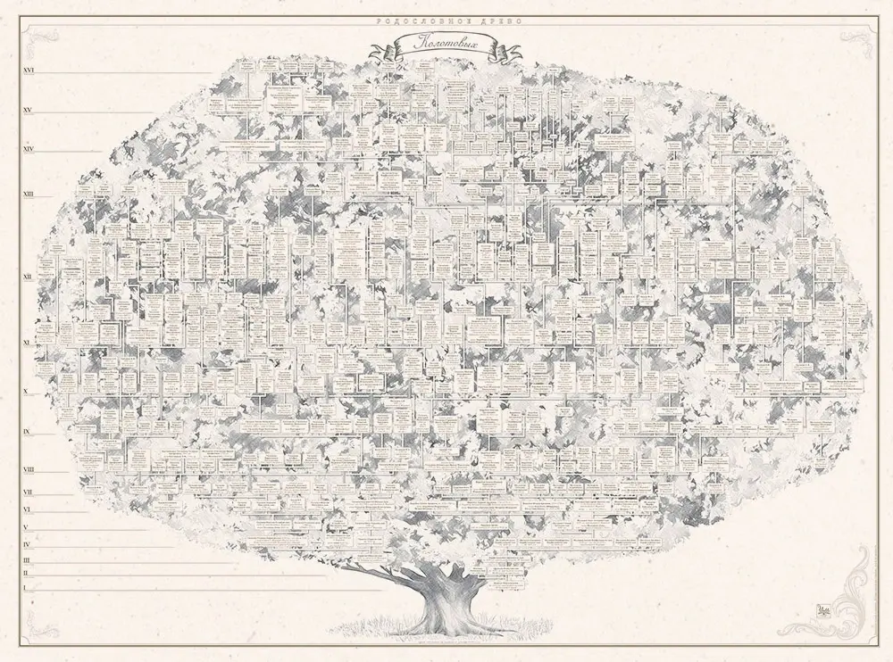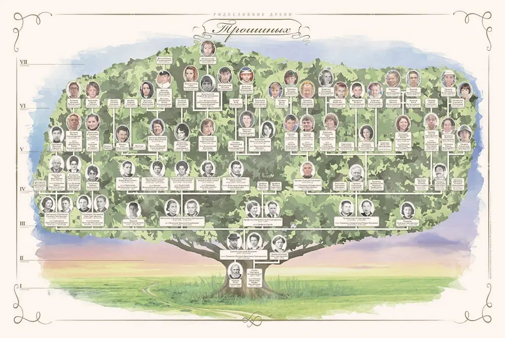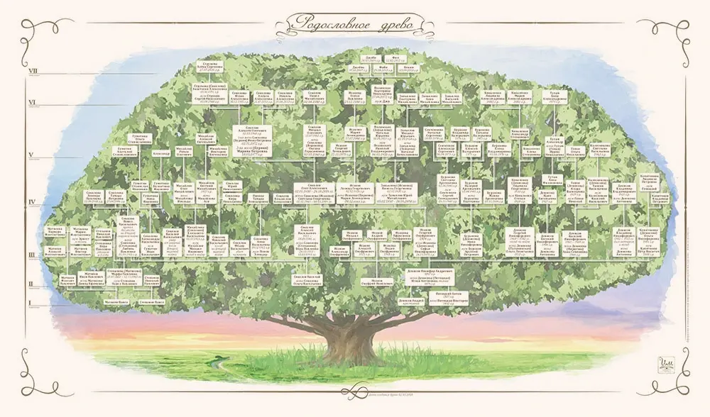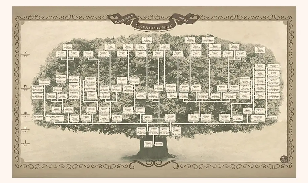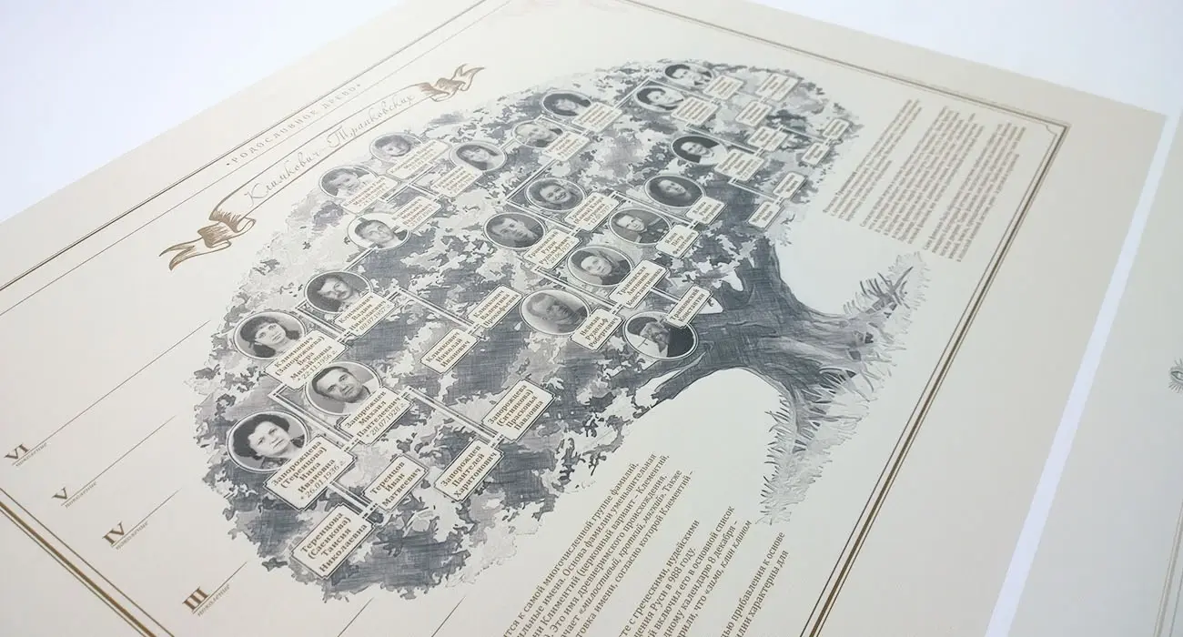 Индивидуальный дизайн семейного древа на основе проведённого генеалогического исследования Вашего рода.