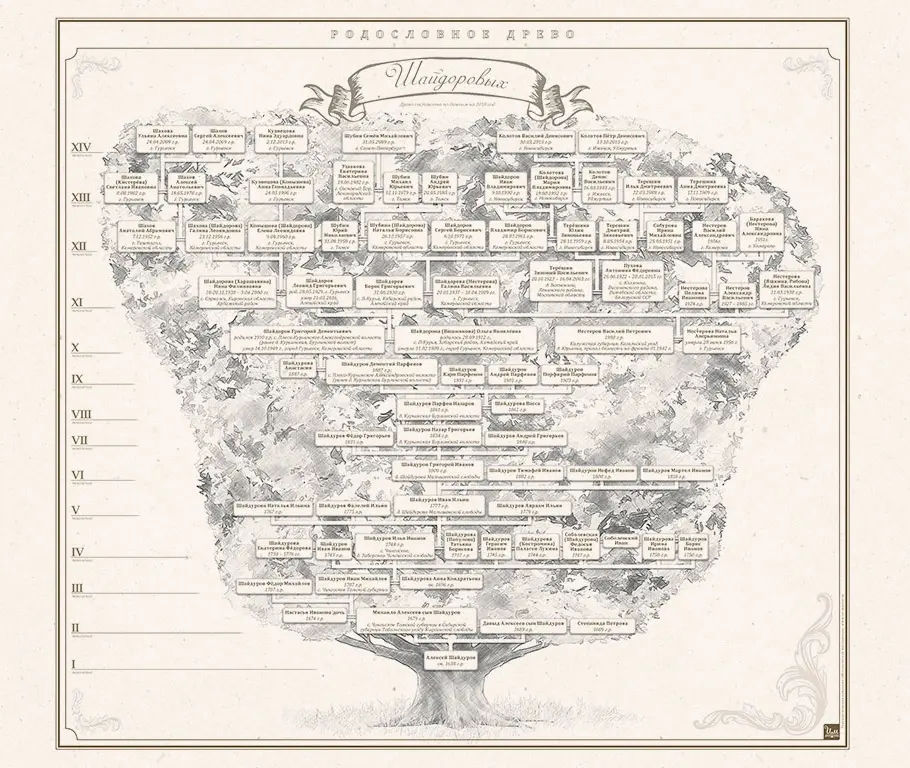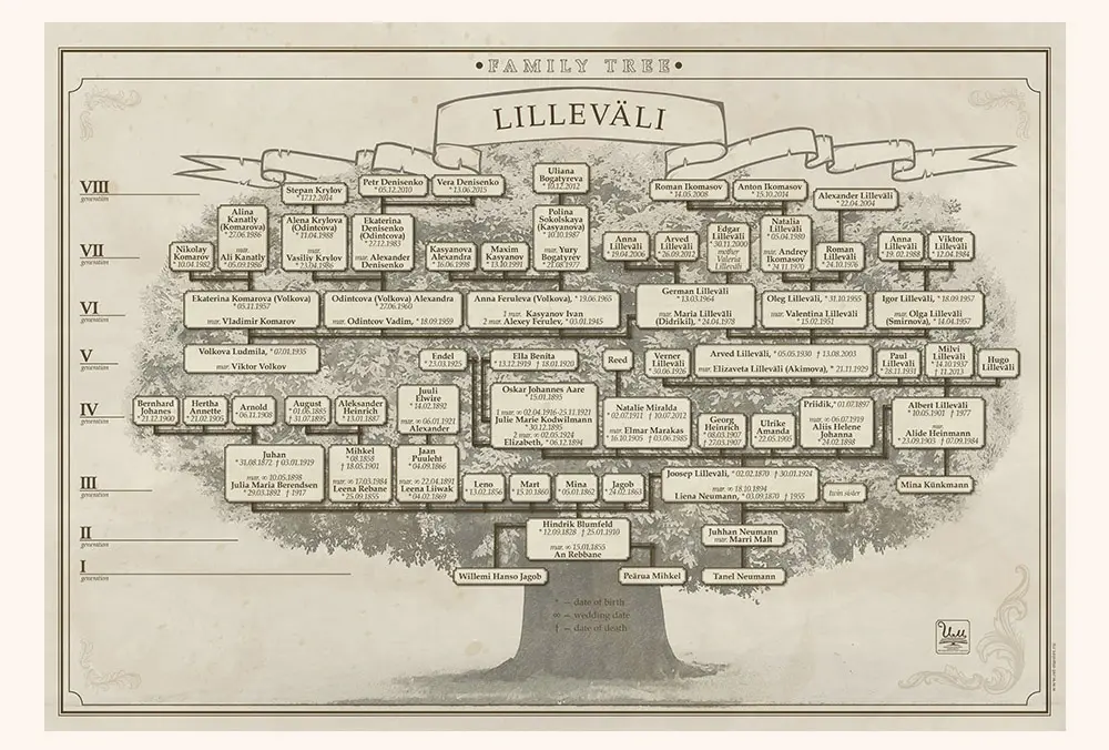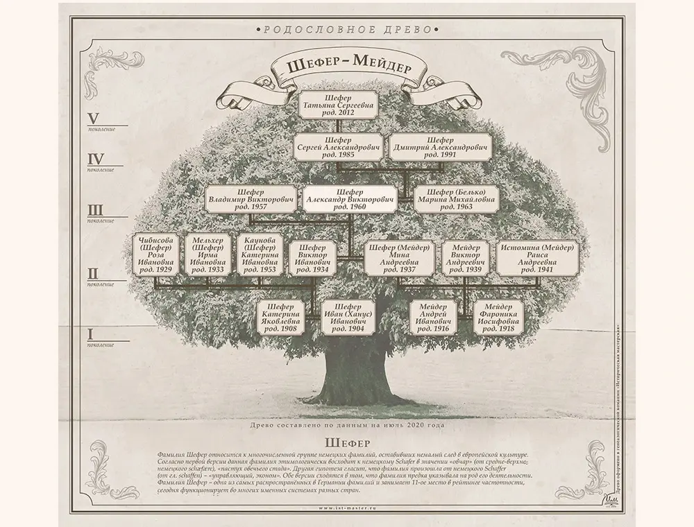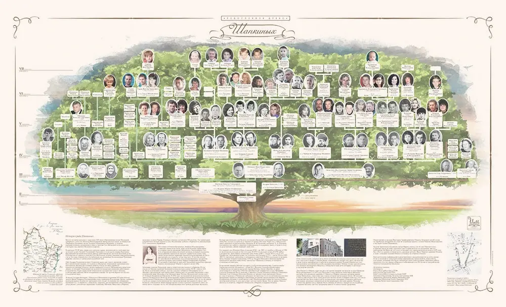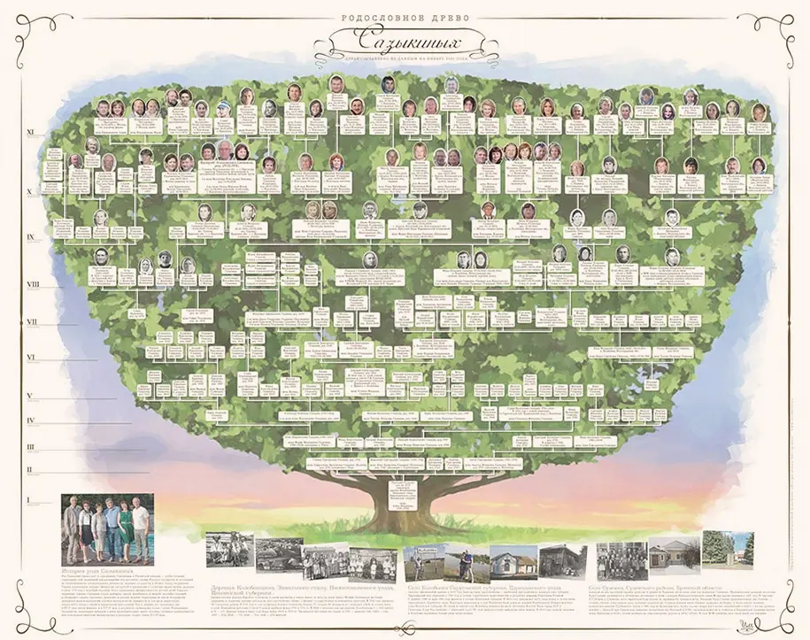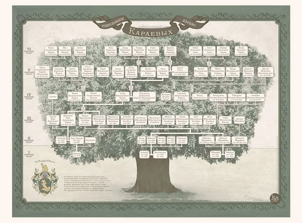 Индивидуальный дизайн семейного древа на основе проведённого генеалогического исследования Вашего рода.